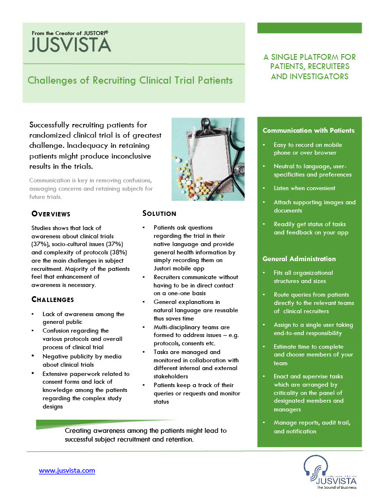 With Corona sweeping across the globe, getting clinical trial subjects has never been so critical. However, the challenges of recruiting volunteers for clinical trials has been there always. Successfully recruiting patients for randomized clinical trial is of greatest challenge. Inadequacy in retaining patients might produce inconclusive results in the trials. Communication is key in removing confusions, assuaging concerns and retaining subjects for future trials.