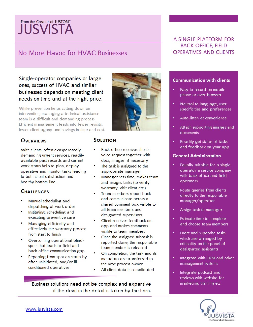 The challanges HVAC or any company that provides on-premise maintenance services to clients has similar challenges: